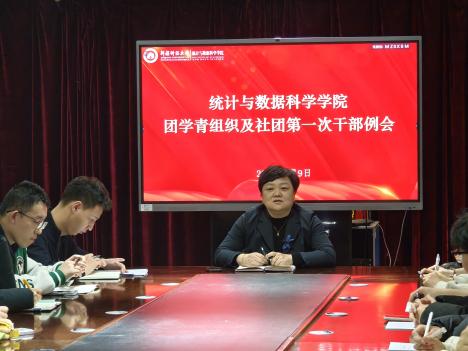 新程启幕,聚力同行。为统筹推进新学期团学青及各社团各项工作,明确工作方向、凝聚工作合力,打造高效务实的学生干部队伍,统计与数据科学学院团学青组织及社团第一次干部例会顺利召开。学院党委副书记、纪委书记毛婉婷,辅导员马佳,学院学生会主席团成员、各部门部长及各社团干部参会,共话新学期学生工作发展蓝图。