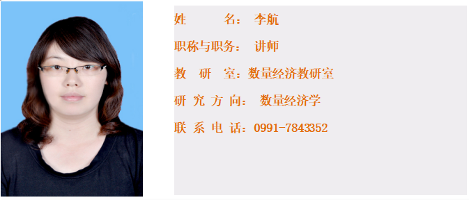 (1)2016/7-至今,新疆财经大学,统计与信息学院,讲师