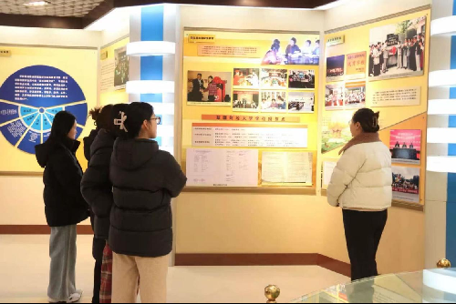 活动中,同学们在讲解员的引导下,循着校史馆内的史料实物与图文展板,系统回顾了学校从创办之初的艰辛探索到如今学科蓬勃发展的奋斗历程。从办学理念的传承迭代到重大发展节点的跨越突破,一幅幅生动画面、一段段详实记载,生动展现了学校扎根新疆、服务区域经济社会发展的责任担当,以及“经世济公,至善至诚”的精神内核。