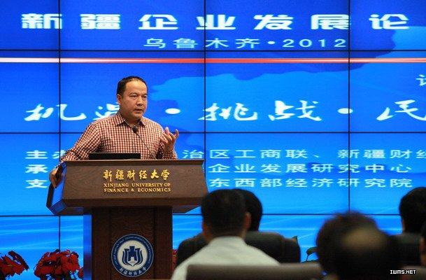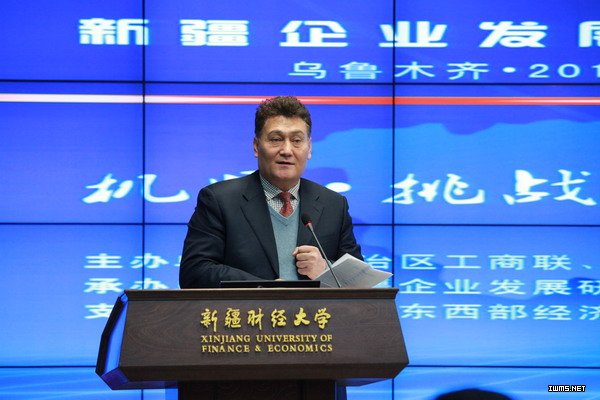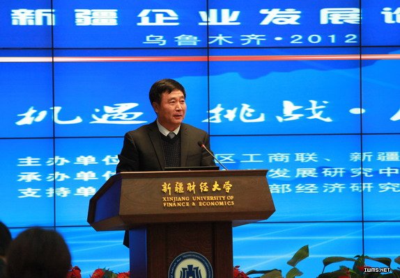 12月15日上午,由我校和自治区工商联联合主办、新疆企业发展研究中心承办的以“机遇?挑战?民营企业可持续发展” 为主题的2012年新疆企业发展论坛在我校济民楼国际会议厅举行。自治区政协副主席、自治区工商联主席、会长巨艾提?伊明发表讲话。校党委书记阿斯哈尔?吐尔逊发表致辞。
