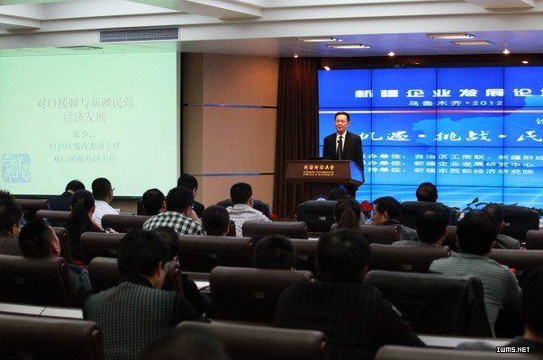 自治区发改委主任张少云发表了主题为“对口援疆与新疆民营经济发展”的演讲,他分析了新疆民营经济的外部环境、潜在实力,面临的机遇和挑战,介绍了新疆民营企业发展的成效。